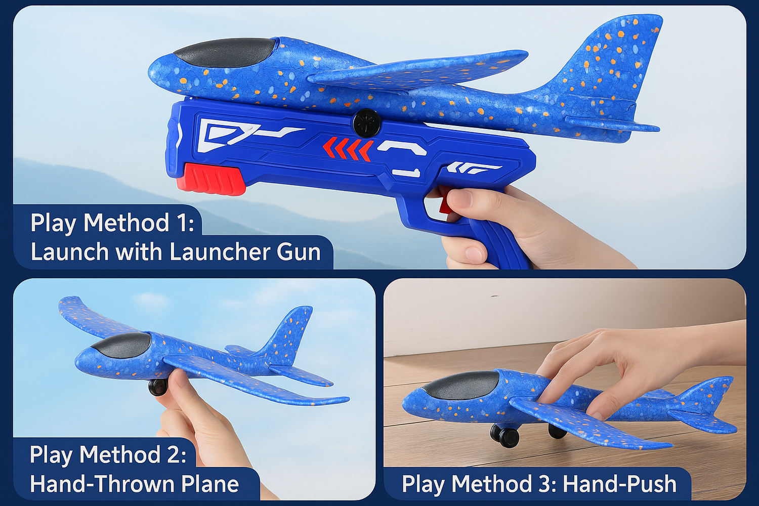 This toy offers more than one way to play. Kids can launch the plane using the launcher gun, throw it by hand for a gliding flight, or push it on the ground like a vehicle. With so many play modes, it provides endless fun while encouraging creativity and improving hands-on skills.