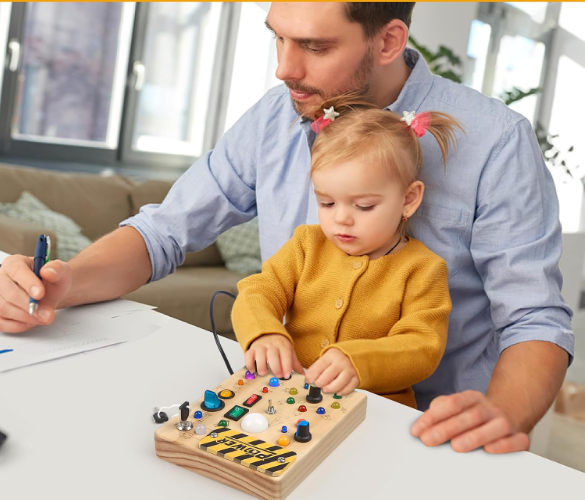 “Turn curiosity into endless discoveries! With over 20 real-life mechanisms, solid wood craftsmanship, and safe LED light feedback, this Montessori busy board transforms playtime into a journey of learning and growth. Compact, durable, and beautifully designed—it’s not just a toy, it’s the perfect gift for birthdays, holidays, or everyday learning fun. Bring home this spark of focus and joy today, and watch your child’s imagination light up!”
